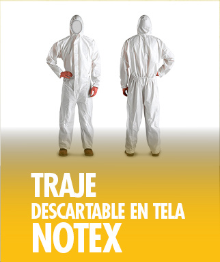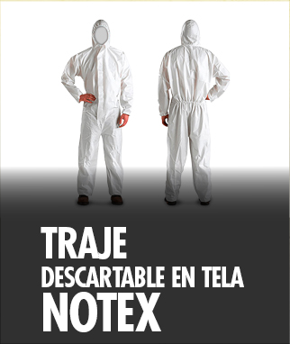 Confección de Mameluco con capucha de Tela no tejida, NOTEX 80 Gramos, específica para la confección de prendas médicas. Compuesta con filamentos continuos de Polipropileno. Contiene 3 capas. Producto Nacional Marca EKAMS.