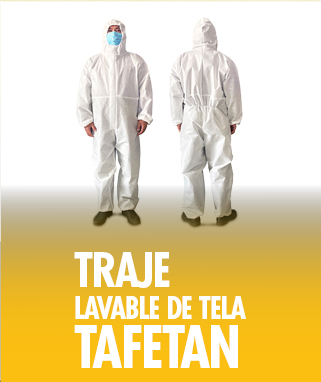Confección y Diseño de Overol Tipo Tyvex en TELA TAFETAN Impermeable y lavable marca EKAMS. Los bordes de la cara, mangas y tobillos se ha considerado tira elástica de 3mm hipoalergénico, anti fluidos, con cobertura del cierre lavable y reutilizable.
